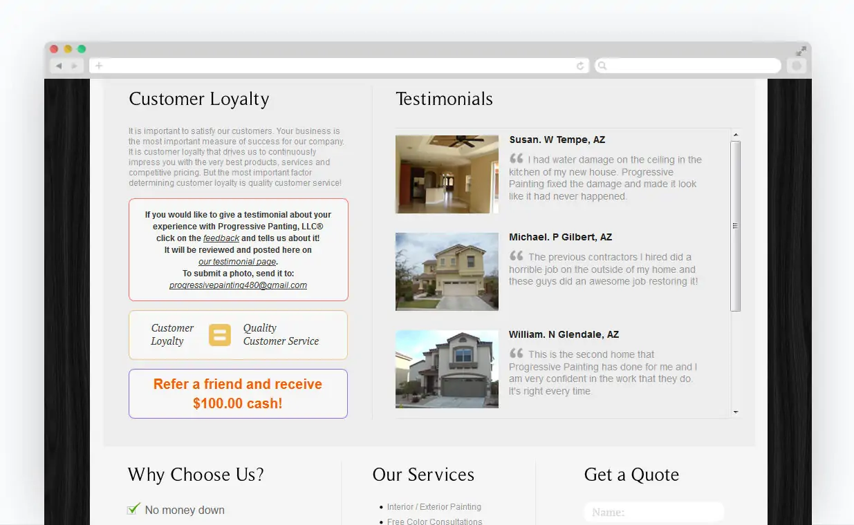 Progressive Painting LLC is located in Phoenix Arizona. They have over 35 years of exterior and interior painting experience. Net-Craft redesigned their painting web site to allow potential customers to better represent the painting services they offer.
