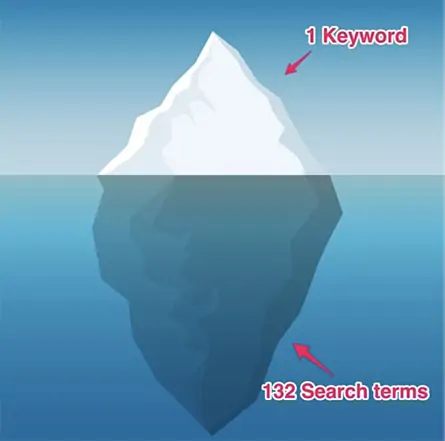 The keywords that you are targeting and the search term that you pay for do not always line the way we want them to. We often see the “Iceberg Effect” in action. The “Iceberg Effect” is where assorted search terms under the surface are placed onto the keywords that we believe are working correctly in our ad campaigns. Your search-to-keyword ratio becomes unhealthy from this effect. Your ratio can end up being something like this: