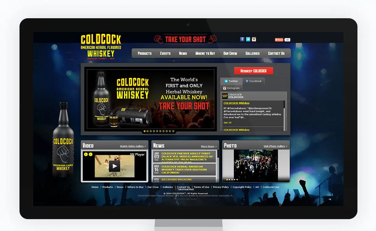 Net-Craft created a custom designed website, comprehensive content management system and mobile website for a new alcohol brand, COLDCOCK American Herbal Whiskey. The website features a video player, social media integration, online submission forms, sound player and expanded slideshow capability. COLDCOCK also had Net-Craft custom design their Facebook and Twitter pages.