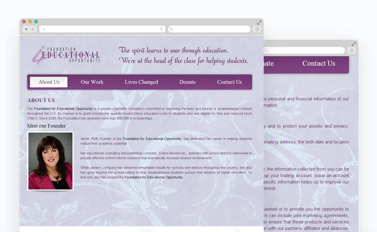 A private and charitable foundation, the Foundation for Educational Opportunity is committed to improving the futures and lives of children who are disadvantaged throughout the United States.