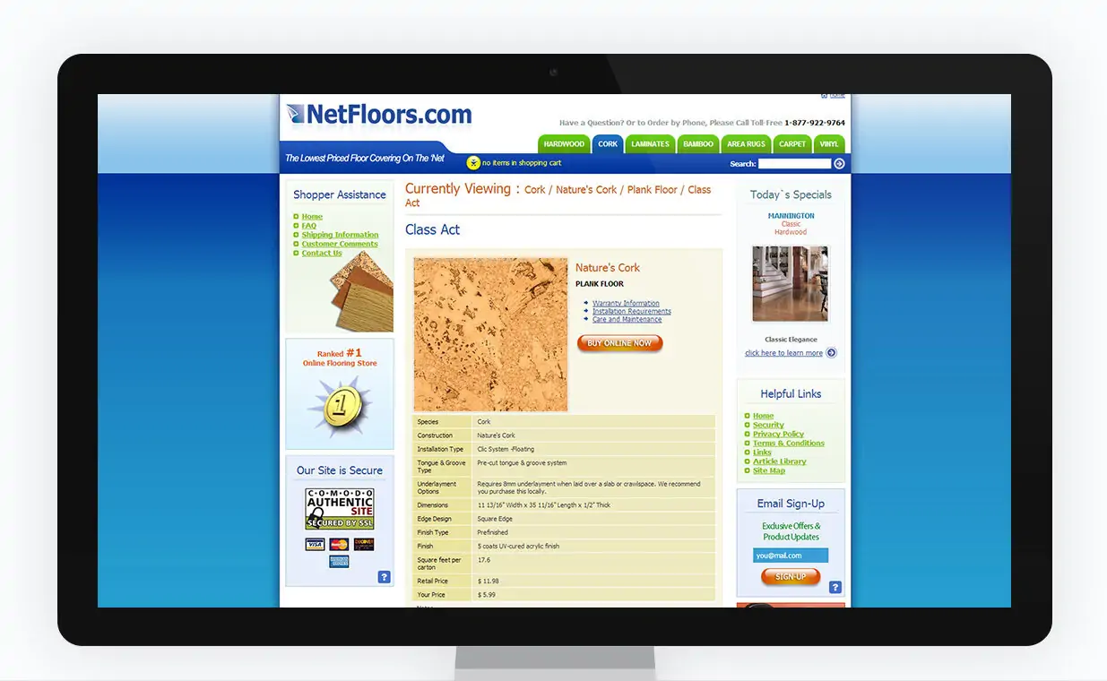 E-commerce store offering a wide selection of low price floor covering online. NetFloors.com is based out of Scottsdale, Arizona.