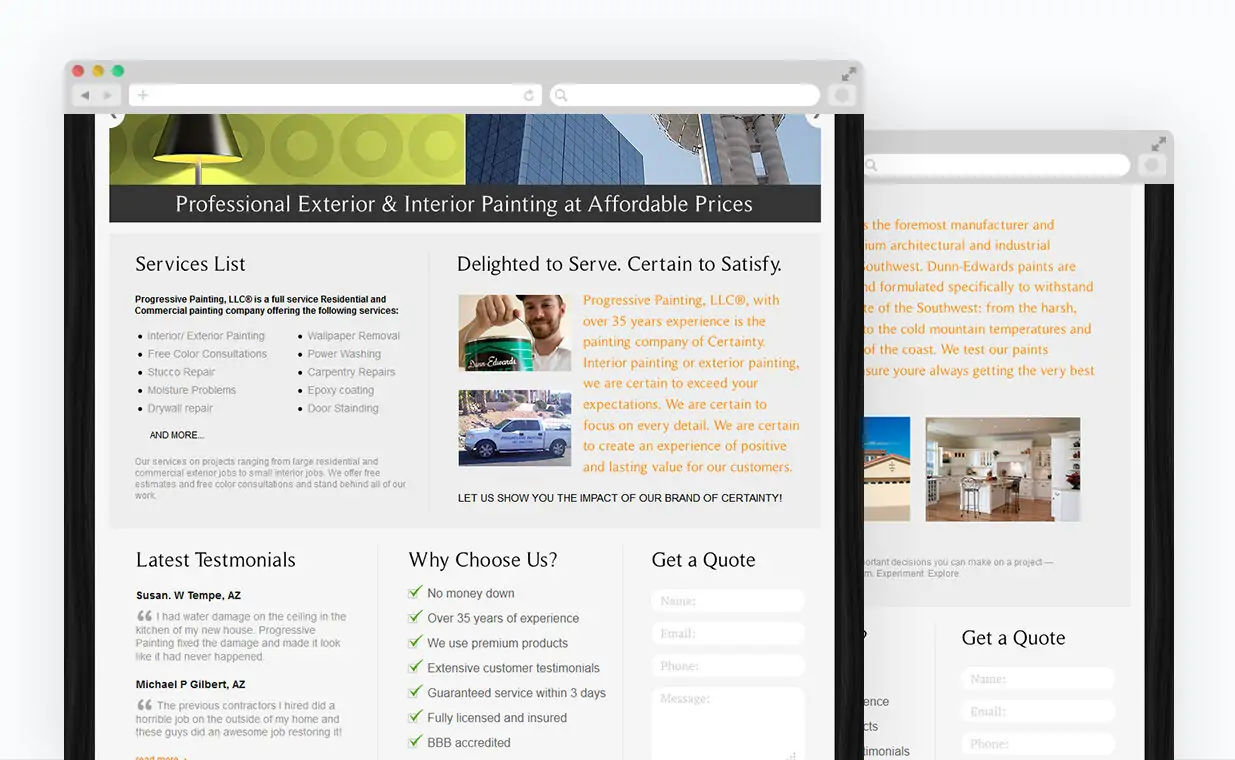 Progressive Painting LLC is located in Phoenix Arizona. They have over 35 years of exterior and interior painting experience. Net-Craft redesigned their painting web site to allow potential customers to better represent the painting services they offer.