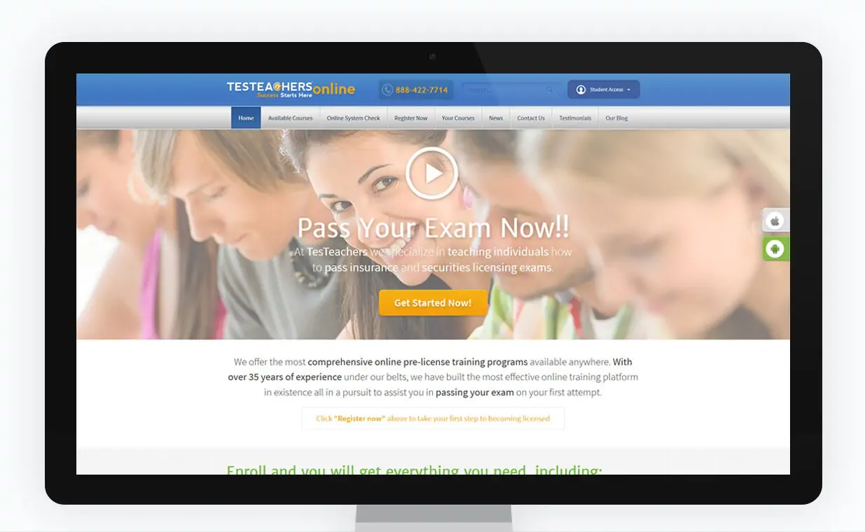 TesTeachers is the first school in the nation to provide prospective licensees with an exact replication of a true classroom experience utilizing online video lecture courses. Online programs include a combination of video classroom instruction, textbook material, practice examinations, and an interactive online Final Exam.