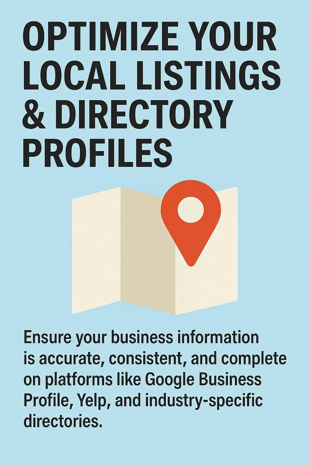 - Use consistent NAP (Name, Address, Phone) data across all platforms.