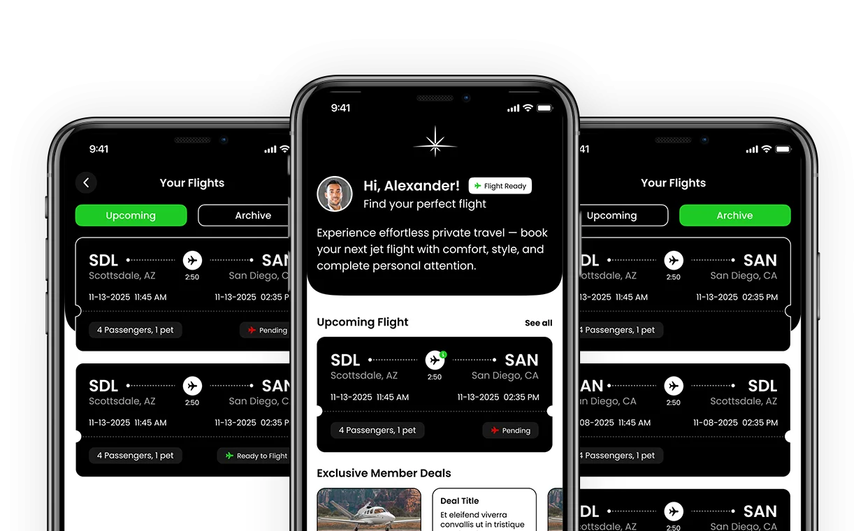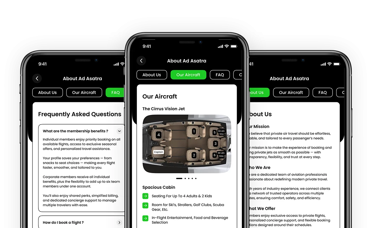 Net-Craft designed and developed a custom mobile application for AdAstra Flights, built to streamline private flight requests and enhance the member experience.
