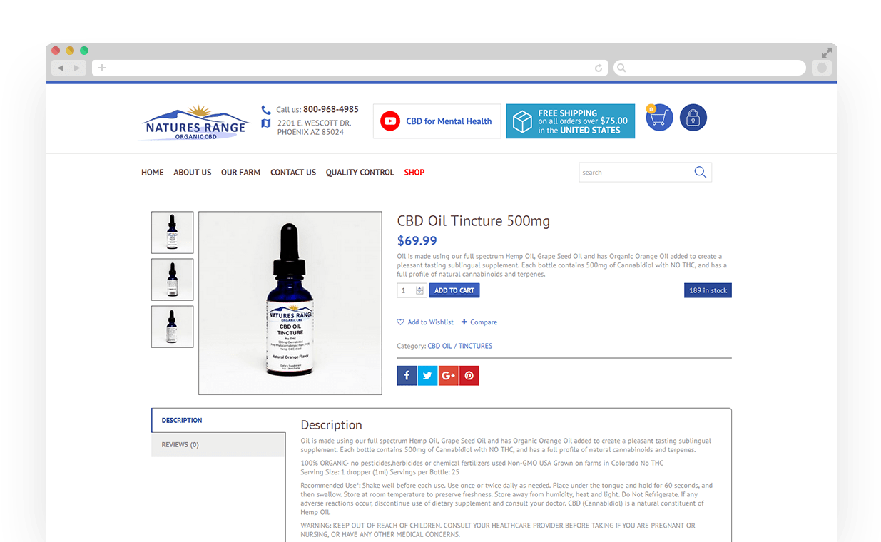 Natures Range Organic sells some of the finest organic CBD products available today. This online store is built using the WooCommerce eCommerce engine and is fully managed by an easy-to-use Content Management System. A responsive mobile version is also present for mobile phones and tablets.